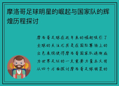 摩洛哥足球明星的崛起与国家队的辉煌历程探讨